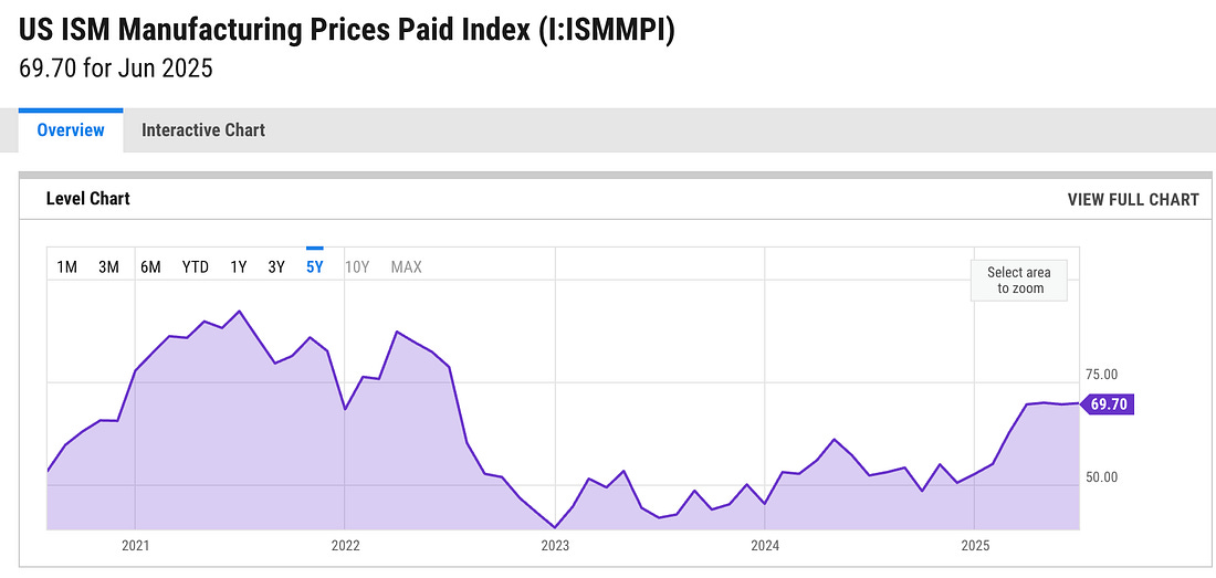 Who is paying? So far, the burden seems to be falling mainly on U.S. businesses, which are definitely seeing a sharp rise in costs. Look, for example, at the Institute for Supply Management’s report on manufacturing, which asks purchasing managers whether their costs have risen. The percentage answering yes has historically been a very good predictor of inflation a few months down the pike. And we’re currently experiencing cost inflation at levels not seen since the summer of 2022: