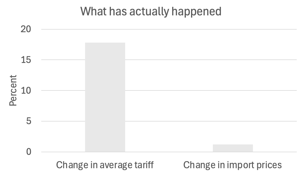 That is, if you look at the right price measures, foreigners don’t seem to be paying any significant share of the Trump tariffs.